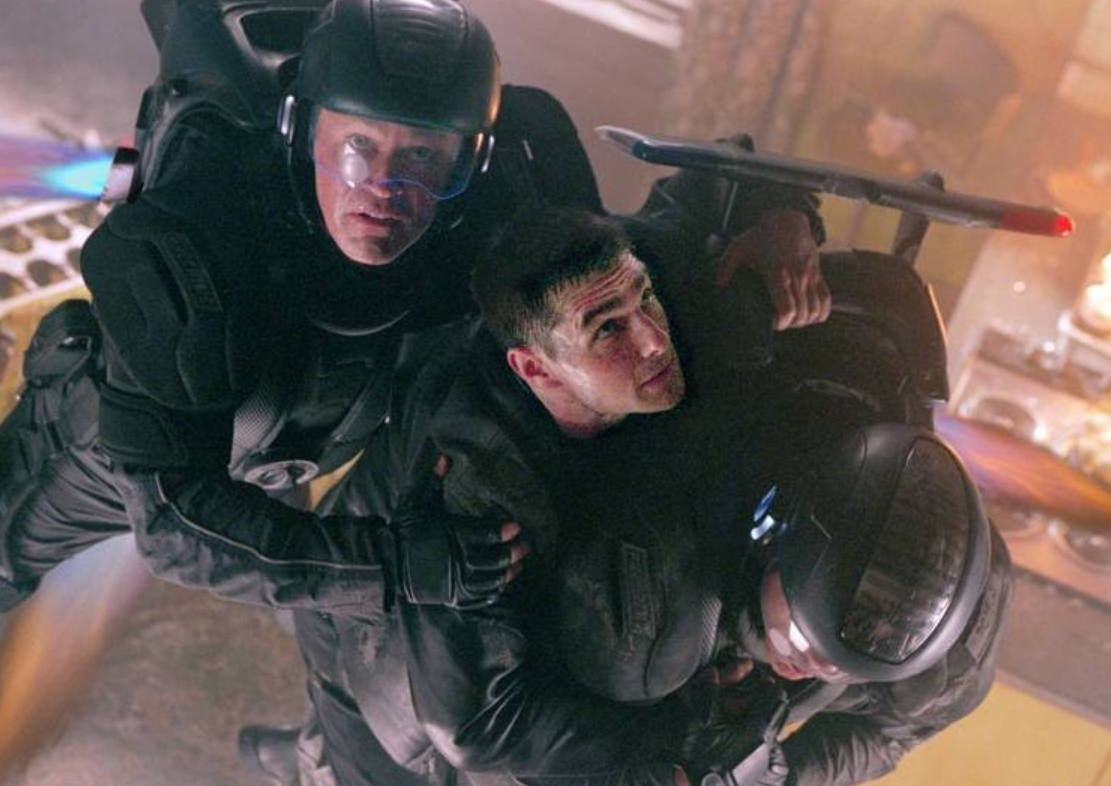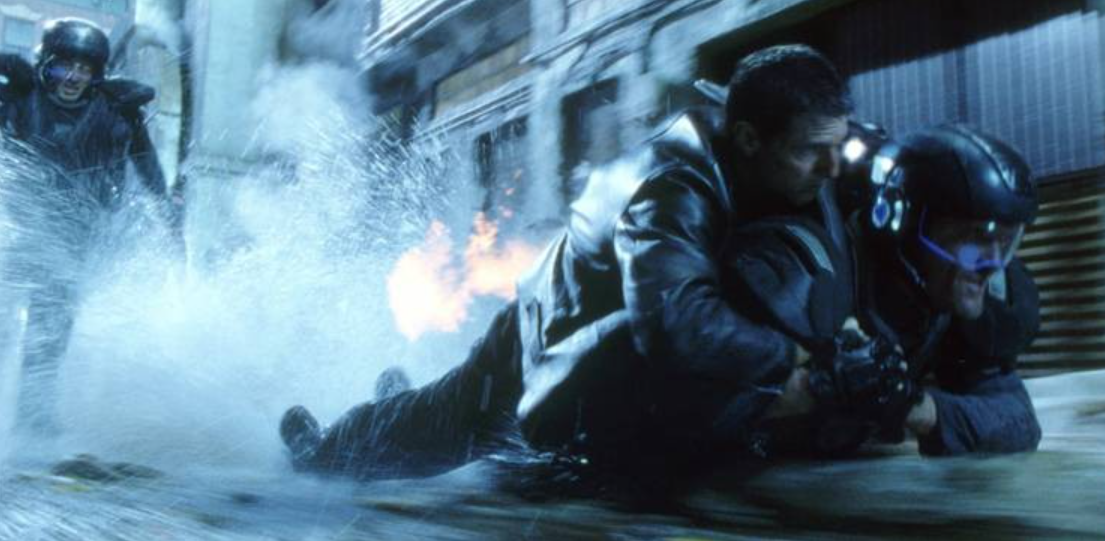 특히 인상적인 장면은 앤더튼이 숨어있는 아파트를 스파이더들이 수색하는 시퀀스입니다. 거미 모양의 로봇들이 건물 전체를 훑으며 모든 거주자의 망막을 스캔하는 장면은 프라이버시라는 개념 자체가 사라진 미래를 보여줍니다. 아이러니하게도 범죄를 예방한다는 명목으로 만들어진 시스템이 무고한 사람을 범죄자로 만들어버리는 상황이 발생합니다.
