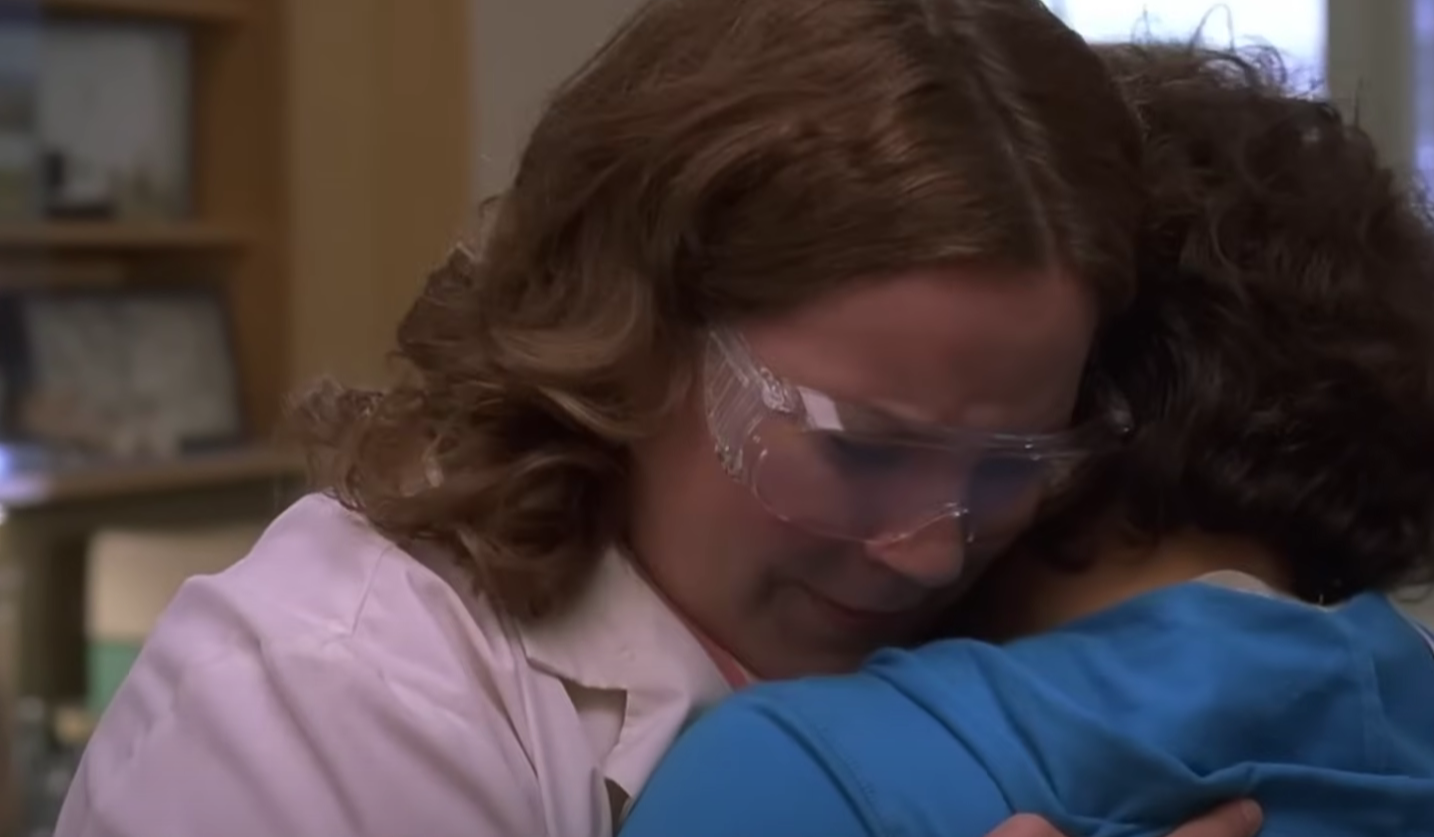 핫칙의 가장 큰 재미는 롭 슈나이더의 연기에서 나옵니다. 그는 중년 남성의 몸에 10대 여고생의 영혼이 들어간 캐릭터를 완벽하게 소화합니다. 높은 톤의 목소리, 과장된 제스처, 여성스러운 걸음걸이까지 디테일이 살아있죠.