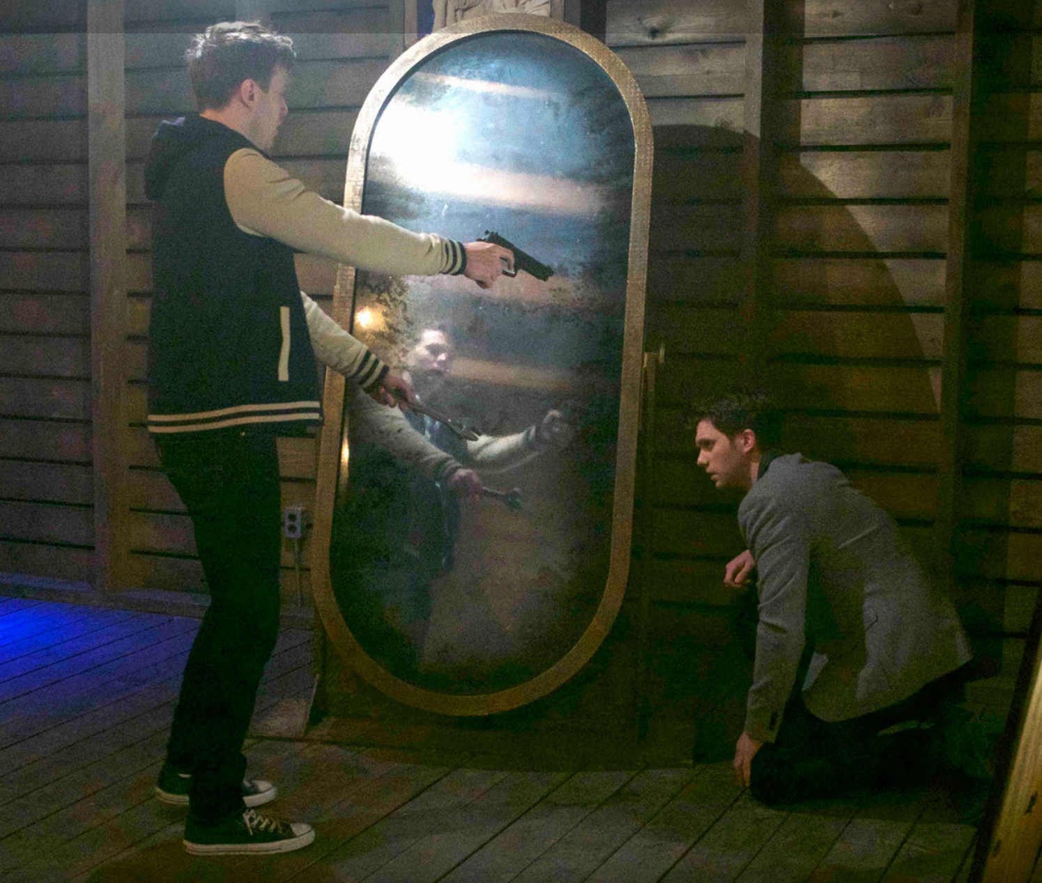 스트레스와 절망감에 휩싸인 순간, 우연히 던진 렌치가 벽을 부수면서 숨겨진 다락방이 드러난다. 그리고 그곳에서 이들은 평범해 보이는 거울 하나를 발견한다. 하지만 이 거울은 단순한 반사체가 아니었다. 다른 차원의 평행세계로 이어지는 통로였던 것이다.